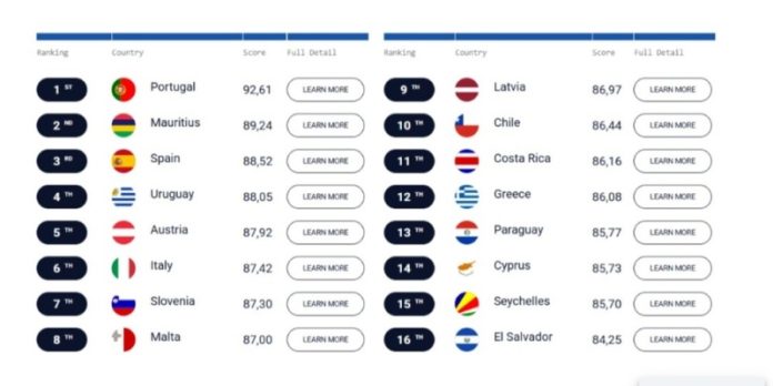 Рейтинг этого года возглавляют Португалия, Маврикий, Испания, Уругвай и Австрия — эти страны получили самые высокие баллы по всем параметрам, что делает их самыми привлекательными направлениями для пенсионеров в 2025 году.
