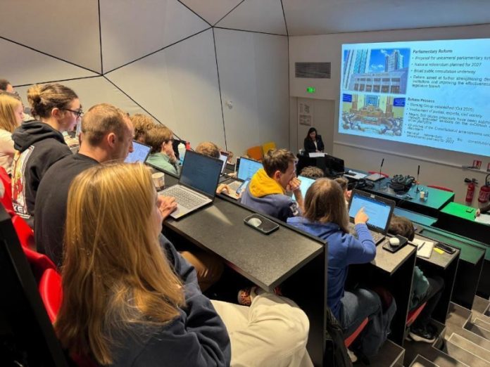 В Страсбурге генеральный консул Казахстана Анель Бақытбекқызы выступила с лекцией перед магистрантами Института политических исследований Страсбургского университета (Sciences Po), посвященной внешней политике президента Касым-Жомарта Токаева и ключевым международным инициативам Казахстана, сообщили в Министерстве иностранных дел Казахстана. Бақытбекқызы рассказала о проводимых институциональных реформах, модернизации системы госуправления и планируемой парламентской реформе, предусматривающей переход к однопалатному парламенту на основе широкого общественного диалога и предстоящего референдума. Внимание магистрантов обращено на многовекторный курс Казахстана как «средней державы» с акцентом на вклад и продвижение международной безопасности, включая инициативы в области ядерного разоружения и нераспространения, миротворческой деятельности под эгидой ООН, посреднических усилий по урегулированию международных конфликтов, а также активное взаимодействие в рамках международных и региональных организаций. Подробные сведения были обозначены также по двустороннему и многостороннему взаимодействию Казахстана с КНР, РФ, США и странами ЕС.