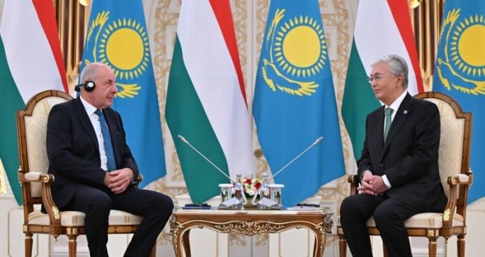 Астана. 2 октября. KAZAKHSTAN TODAY — Президент Казахстана Касым-Жомарт Токаев и президент Венгрии Тамаш Шуйок в ходе встречи обсудили вопросы расширения торгово-экономического партнерства и обменялись мнениями по актуальным вопросам международной повестки, сотрудничеству в рамках многосторонних структур, сообщает Акорда.