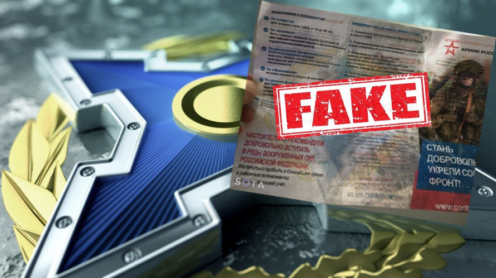 Объяснение этому абсурдному обстоятельству может быть только одно. Кто-то взял старые буклеты Минобороны РФ и ОДКБ (возможно, публиковавшиеся в интернете именно в 2018-м) и обработал их на сервисах графического редактирования и дизайна (Photoshop, Canva, Scribus, FinePrint, Microsoft Office Publisher и т.д.). Один из таких буклетов нам, к слову, без труда удалось найти на сайте МО РФ, но в нём рекламировалась служба по контракту. Примечательно, что в этой рекламе использовалось фото того самого солдата, что и в скандальном буклете.